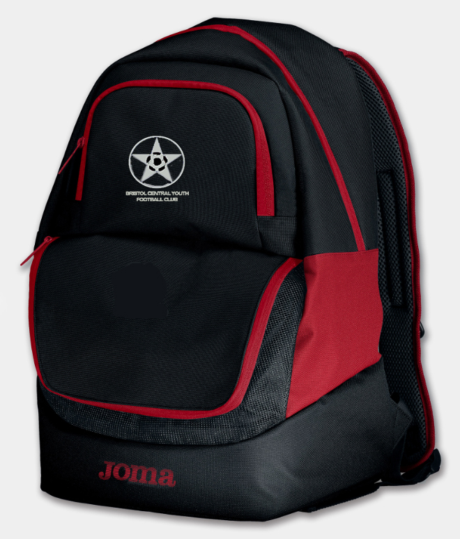 Bristol Central Logo embroidered to front of backpack as standard. Option to add Initials, Please let us know what Initials you would like in the additional comments section after checkout.