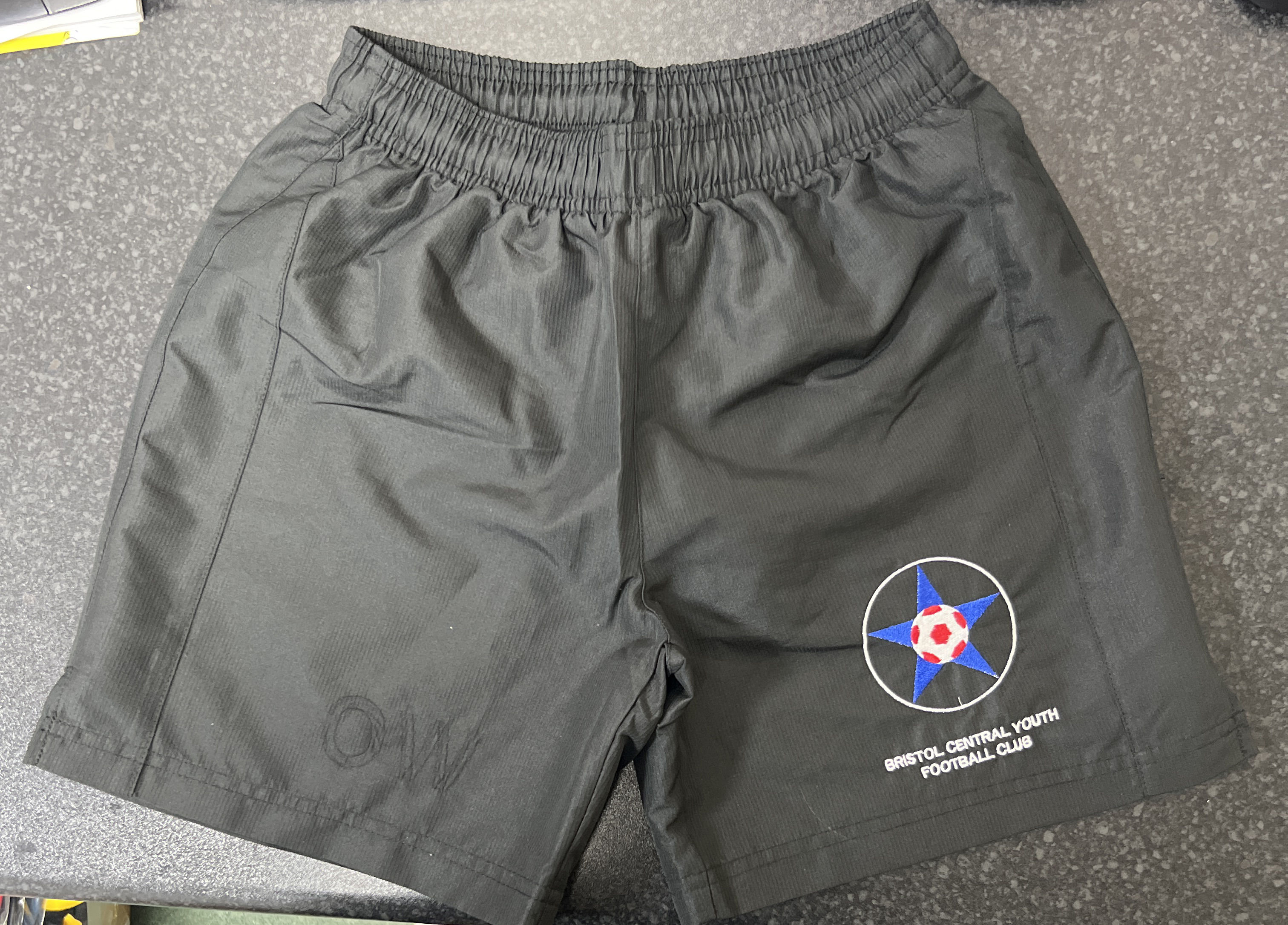 Bristol Central Logo embroidered to left leg. Shorts have faint initials 'OW', as seen in the image.
